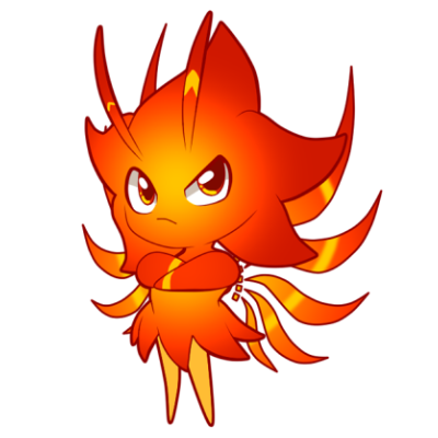 Ember is a happy-go-lucky starsprite with a heart of gold, always eager to brighten the mood of those around them. They may not be the smartest of the group, but they more than make up for it with their friendliness, and their boundless energy. They are sociable, emotionally-open, and quick to get excited over even the smallest things. They’re not the brightest tool in the shed, but their naivety and tendency to get easily distracted only add to their charm, making them a playful little ball of fire.