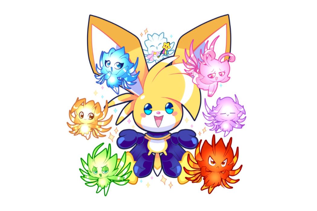 Twinkle is the baby of the group, sweet and clingy with the other starsprites, and especially with Kinoko. They love to stay close to him, and fall asleep only when he sings them their favourite lullaby. They are still too young to control their powers, and this often leads to unpredictable mischief. They are easily frightened, and often dash back to Kinoko, seeking his protection. Twinkle loves toys, and spends hours happily playing with them. Their pure bond with Kinoko brings a hope and joy into the Star Heretic’s life like no other, similar to that shared between a parent and their child.